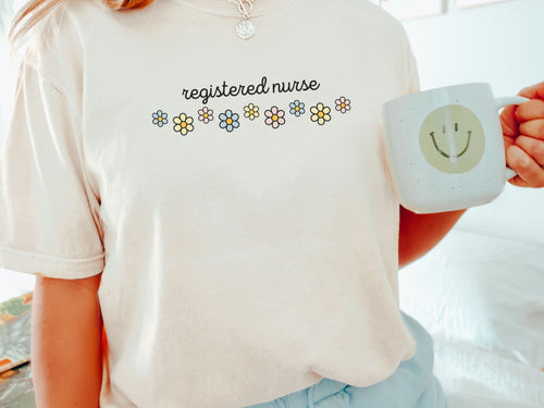 Featuring a friendship-bracelet inspired design with “Registered Nurse” across the center, this tee blends nostalgia with everyday confidence.